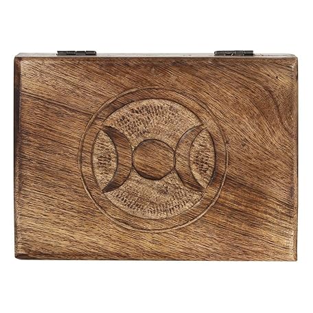Enchanting Handcarved Triple Moon Tarot Card Box - (1 Pc.) - Premium Mango Wood - Ideal for Storing Tarot Cards, Crystals & Magical Treasures