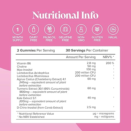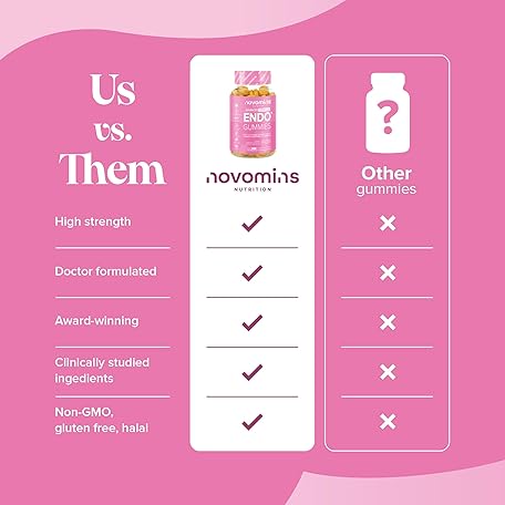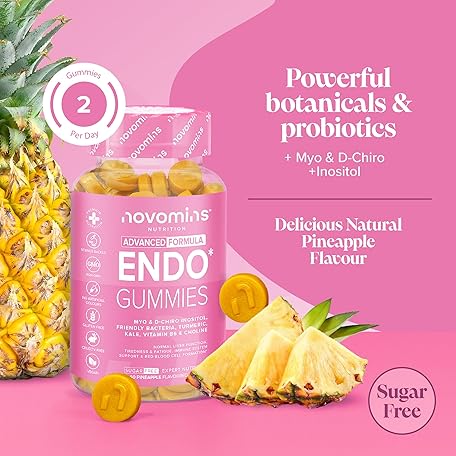 Thông tin sản phẩm Endo Gummies - Myo-Inositol, Turmeric, Vitamin B6 & Probiotics for Gut Health - Intimate Health & Hormone Balance for Women - 60 Feminine Balance Gummies - Gluten Free - 1-Month Supply - Novomins