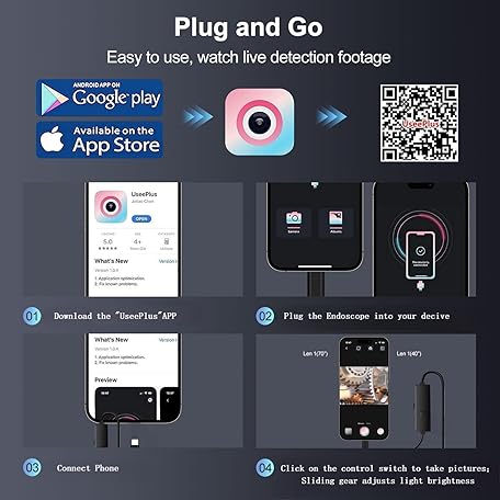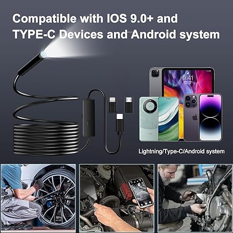 Thông tin sản phẩm Endoscope Inspection Camera with Lights, 1920P HD Flexible Borescope Lens, 16.5ft Semi-Rigid Snake Cameras,IP67 Tube Sink Pipe Drain Overhaul, for Android, iPhone, iPad, Tools