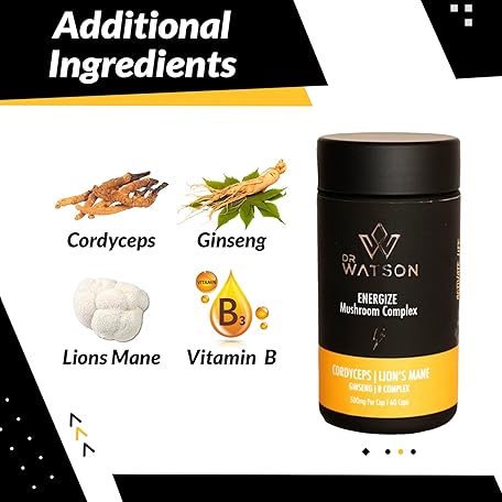 Sản phẩm Energize Mushroom & Multivitamin Capsules by Dr Watson | Cordyceps Lions Mane Vitamin B Complex Ginseng | 60 Capsules | 500mg Capsules 30000mg per Pack đang được bán với giá ưu đãi là $16.5135 tại nước Anh.