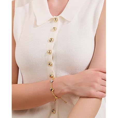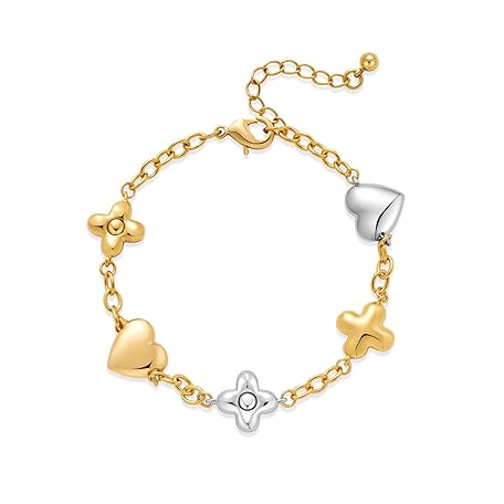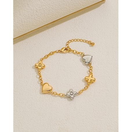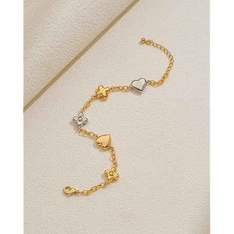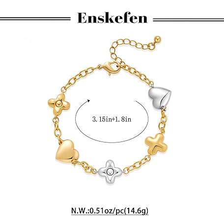 ENSKEFEN Dainty Chain Link Charm Bracelets for Women Adjustable Gold and Silver Love Heart Four Clover Bracelet Fashion Minimalist Stackable Bracelet Jewelry