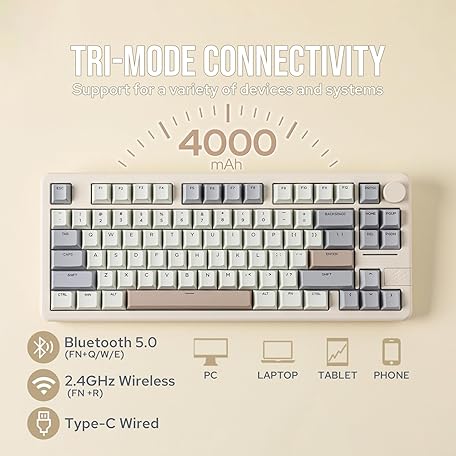 Thông tin sản phẩm EPOMAKER Galaxy70 Wireless Gaming Keyboard, 75% Aluminum Mechanical Keyboard, Bluetooth 5.0/2.4GHz/USB-C Wired, Programmable, Hot Swappable, Creamy Gasket (White, Zebra Switch)