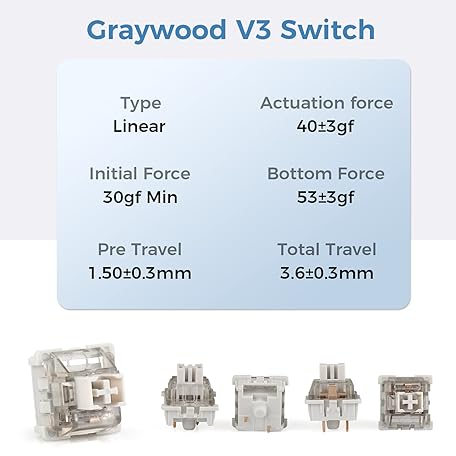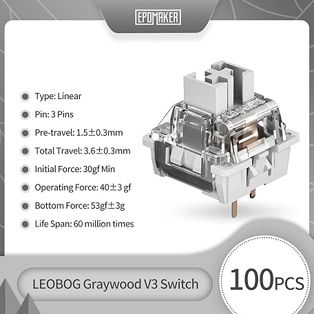 Thông tin sản phẩm EPOMAKER LEOBOG Graywood V3 Mechanical Switch Set, Linear Switch, 40g, 3 Pins, 100 Pieces for Customizing Keyboards