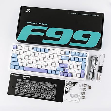 Thông tin sản phẩm EPOMAKER x AULA F99 Wireless Mechanical Keyboard, Hot Swappable Gasket Custom Gaming Keyboard with Five-Layer Padding, Bluetooth/2.4GHz/USB-C, 8000mAh Battery (White Light Blue, Graywood V3 Switch)