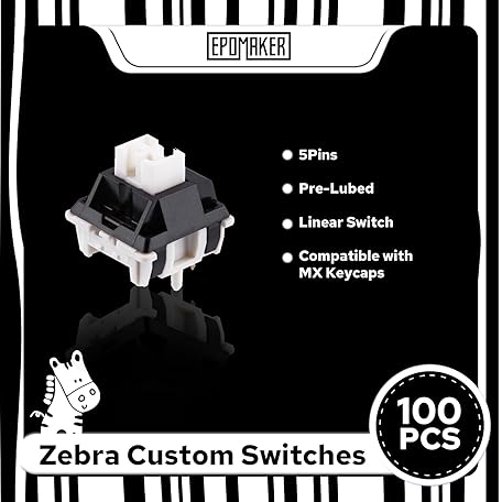 Thông tin sản phẩm EPOMAKER Zebra 40gf Linear Mechanical Keyboard Switches, 5-Pin Pre Lubed Creamy Switch, 100 PCS, with POM Stem, 21mm Spring, Compatible with MX Keycaps for Gaming Keyboard