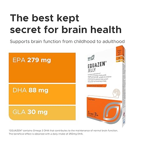 Thông tin sản phẩm EQUAZEN Jelly | Omega 3 & 6 Fish Oil Supplement | Supports Brain Function | Blend of DHA, EPA and GLA | Suitable for Children from Years to Adults | 30 Jellies, Fruity Flavour