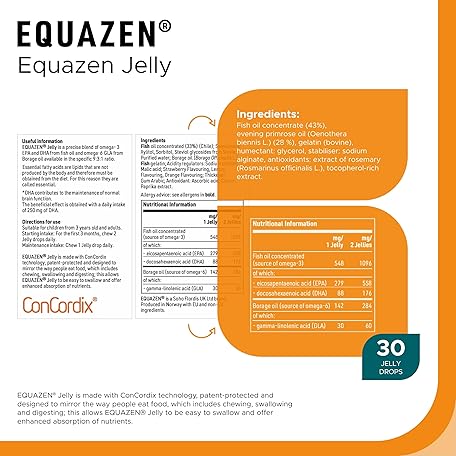 Sản phẩm EQUAZEN Jelly | Omega 3 & 6 Fish Oil Supplement | Supports Brain Function | Blend of DHA, EPA and GLA | Suitable for Children from Years to Adults | 30 Jellies, Fruity Flavour đang được bán với giá ưu đãi là $22.1052 tại nước Anh.