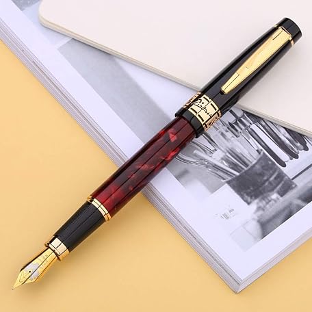 Sản phẩm erofa Picasso 915 Marble Celluloid Fountain Pen, Rose Red Colour Medium Nib Ink Pen with Pen Pouch đang được bán với giá ưu đãi là $60.9964 tại nước Anh.