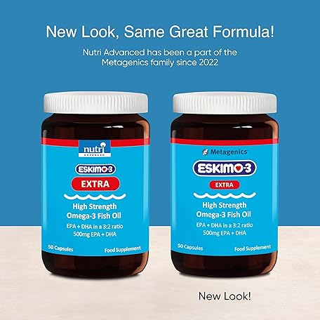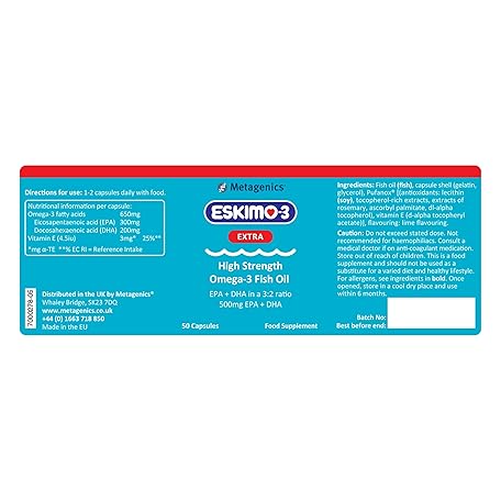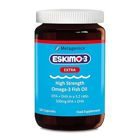 Sản phẩm Eskimo-3 Extra High Strength Omega-3 Fish Oil by Metagenics - 500mg Essential Fatty Acids EPA & DHA - 50 Capsules đang được bán với giá ưu đãi là $48.9083 tại nước Anh.