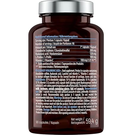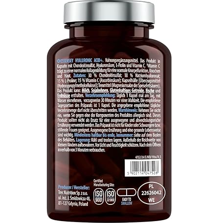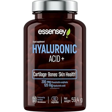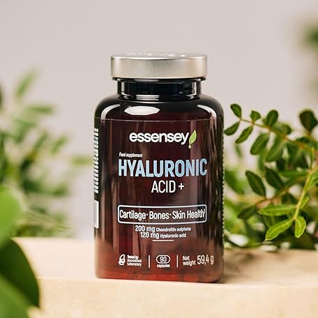 Thông tin sản phẩm ESSENSEY Hyaluronic Acid+ 90 Capsules - Advanced Skincare and Joint Health Supplement with Vitamin C, Collagen Support, Proline, and Chondroitin - Promotes Radiant Skin, Flexible Joints
