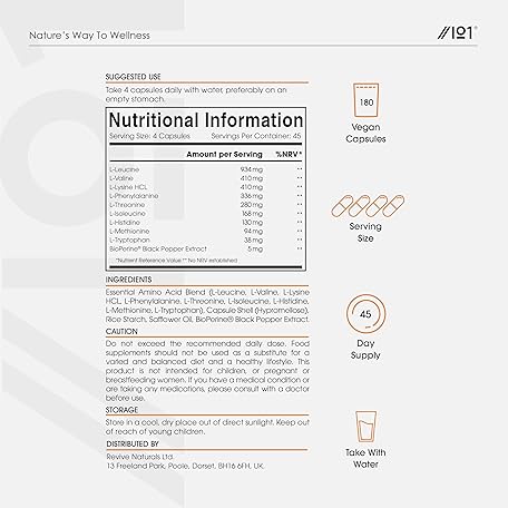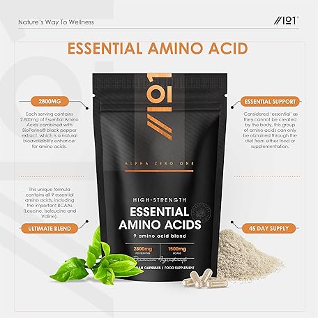 Sản phẩm Essential Amino Acids 2800mg with BioPerine® – 180 Vegan Capsules – All 9 EAA Amino Acids with All 3 BCAA's Plus 6 More EAAs to Build and Repair Muscle - by Alpha01 đang được bán với giá ưu đãi là $14.3117 tại nước Anh.