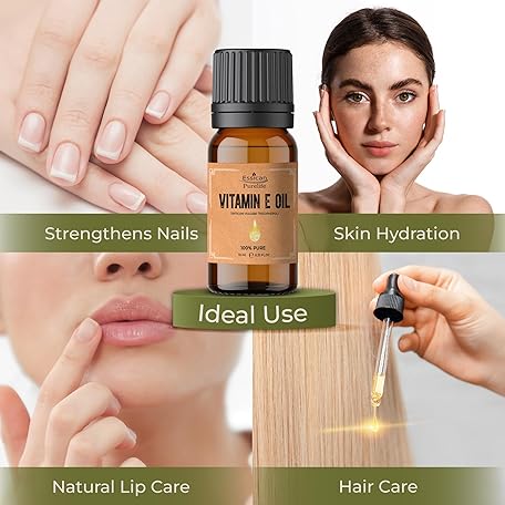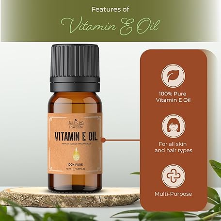 Thông tin sản phẩm Essican Purelife Pure Vitamin E Oil for Skin, 10ml Natural Vit E Oil for Skin, Hair & Face, Antioxidant Rich, Carrier Oils for Essential Oils Mixing, Supports Hair Growth, Nails & Cuticles