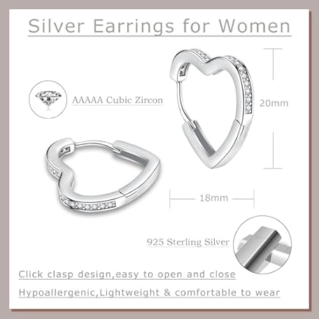 Sản phẩm Estrellique Silver Hoop Earrings with Zirconia, Hypoallergenic Heart/Star/Triangle Shape Geometric Silver Hoop Earrings for Women đang được bán với giá ưu đãi là $14.9657 tại nước Anh.