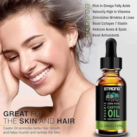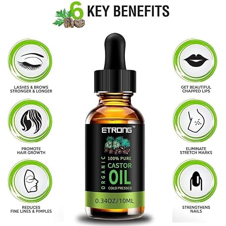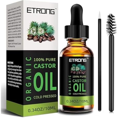 Thông tin sản phẩm ETRONG Organic Castor Oil,Pure Cold Pressed Castor Oil for Eyebrows,Eyelashes,Hair Growth,Nails,and Skin with 1 Set of Eyebrow&Eyeliner Brushes (10 ml)