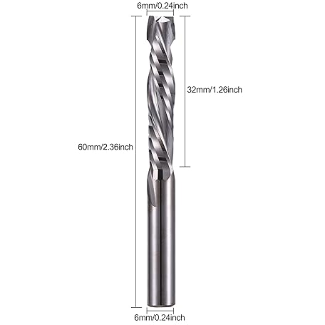 Thông tin sản phẩm EU_HOZLY Tungsten Carbide Compression CNC Router Bit, 6mm Shank, 6mm Cutting Diameter, 32mm Cutting Length, 50mm Total Length, 2 Flutes, Center Cut, Unfinished, 5 Pack