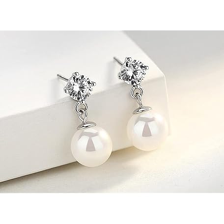 Sản phẩm EVELYN 925 Sterling Silver Pearl Earrings for Women, With Austrian Crystals Diamond Stud Pearl Drop Earrings, Fine Jewelry Gifts for Women đang được bán với giá ưu đãi là $14.933 tại nước Anh.
