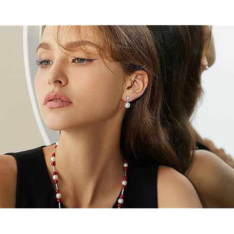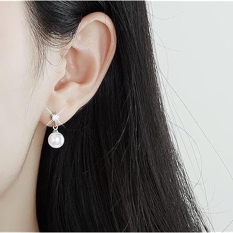 Thông tin sản phẩm EVELYN 925 Sterling Silver Pearl Earrings for Women, With Austrian Crystals Diamond Stud Pearl Drop Earrings, Fine Jewelry Gifts for Women