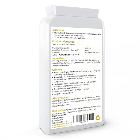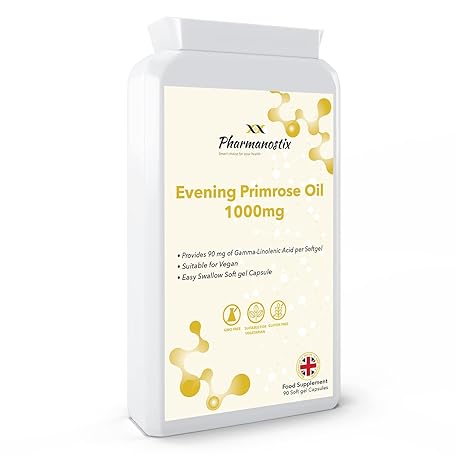 Sản phẩm Evening Primrose Oil 1000mg 90 Vegan Softgel Capsules - Cold Pressed - High GLA Formulation with Vitamin E - No GMOs - UK Made by Pharmanostix đang được bán với giá ưu đãi là $21.7891 tại nước Anh.