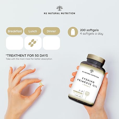 Sản phẩm Evening Primrose Oil 2000 mg per dose, GLA Omega 6 200mg + Vitamin E. 200 High Strength Softgels, Easy Swallow, Cold Pressed. Menopause, Skin and Nails Care. Made in EU. N2 Natural Nutrition. đang được bán với giá ưu đãi là $24.6449 tại nước Anh.