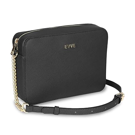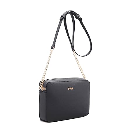 EVVE Women's Saffiano Crossbody Camera Bag Designer Shoulder Purse with Chain and Leather Strap, Black, One Size
