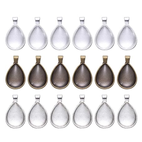EXCEART 36pcs Diy Jewelry Making Kit Alloy Pendant Trays with Glass Drops for Crafting Antique Silver Bronze Bright Silver Bezel Pendant Trays for Unique Jewelry Creation