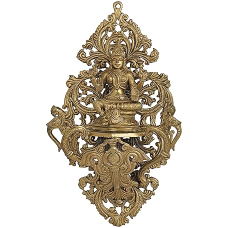 Exotic India Goddess Lakshmi Against a Traditional Leaf Backdrop (Wall Hanging in Hoysala Art) - Bronze Statue