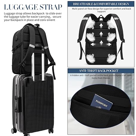 Thông tin sản phẩm Extra Large Backpack 55L,18.4 Inch Travel Laptop Work Bag with USB Charging Port Big Business Flight Approved TSA Heavy Duty Computer Rucksack for Men Women College School,Black