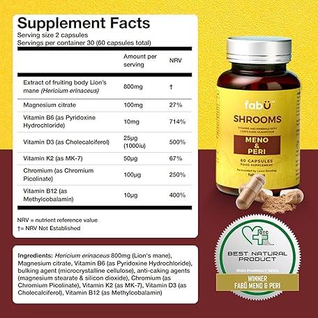 Sản phẩm fabÜ Shrooms MENO & PERI - Lion's Mane Mushroom & Magnesium Supplements for Women During Menopause - Natural Perimenopause Support - Hormone Balance & Energy Support (60 Capsules) đang được bán với giá ưu đãi là $36.8965 tại nước Anh.