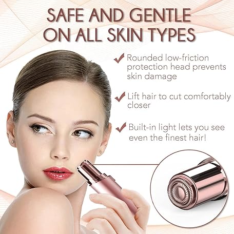 Thông tin sản phẩm Facial Hair Removal for Women, Gurelax Touch Painless Face Shavers for Women,Hair Removal Device Rechargeable, Included 2 X Replacement Heads,Peach Ladies Face Shaver for Upper Lip, Chin, Mustache