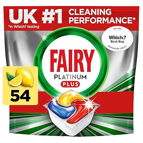 Fairy Platinum Plus All In One Dishwasher Tablets, Lemon, 54 Tablets,Removes Dullness & Prevents Limescale