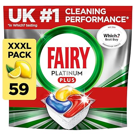 Sản phẩm Fairy Platinum Plus Dishwasher Tablets – Bulk Pack, 59 Tablets, XXL Pack, Lemon đang được bán với giá ưu đãi là $17.113 tại nước Anh.