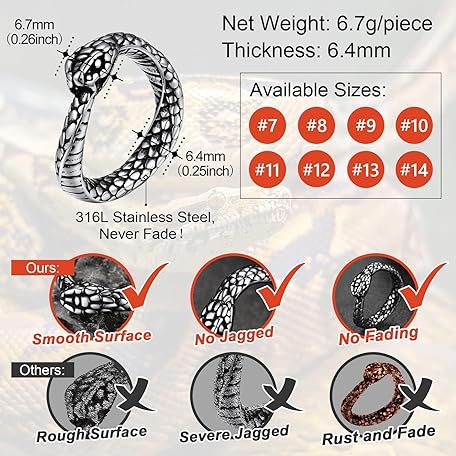 Thương hiệu FaithHeart là cái tên nổi tiếng được rất nhiều khách hàng trên thế giới chọn lựa. Với kiểu dáng đẹp mắt, sang trọng, sản phẩm FaithHeart Punk Snake Rings for Men Women, Stainless Steel/18K Gold Plated Gothic Midi Ring Size 7-14, Sent with Gift Box, Stainless Steel, No Gemstone là sự lựa chọn hoàn hảo nếu bạn đang tìm mua một món cho riêng mình.