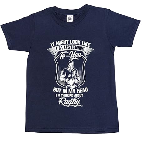 Fancy A Snuggle It Might Look Like I'm Listening But in My Head I'm Thinking About Rugby Kids Boys/Girls T-Shirt Navy Blue 12-14 Year Old