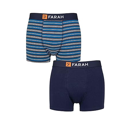Thương hiệu Farah là cái tên nổi tiếng được rất nhiều khách hàng trên thế giới chọn lựa. Với kiểu dáng đẹp mắt, sang trọng, sản phẩm Farah Men’s 2 Pack Cotton Trunks – Classic Fit, Soft Stretch, One Plain One Striped, Supportive Comfortable Underwear for Daily Wear, Sizes S–XL là sự lựa chọn hoàn hảo nếu bạn đang tìm mua một món cho riêng mình.