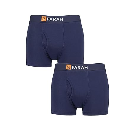 Farah Mens Classic Keyhole Trunks - Plain and Striped Designs, Soft Cotton in a Multipack Pack of 2 Sizes S,M,L,XL,XXL