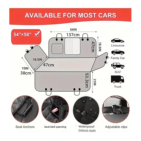 Thông tin sản phẩm Fashion Valley Dog Car Seat Cover Dog Hammock for Cars Back Seat with Anchors, Side Flaps Pocket & Poo Bags Covers for Dogs Back Seats Cover with Side Protections & Mesh Visual Window