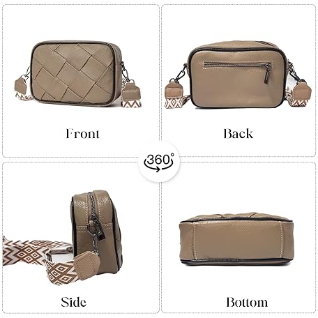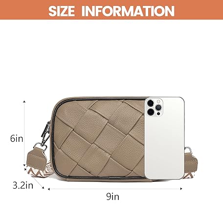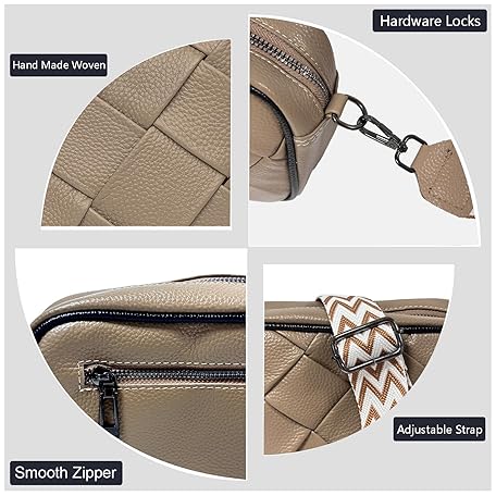 Thông tin sản phẩm FAYBA Woven Crossbody Bag for Women, Wide Strap Genuine Leather Shoulder Bag, Small Handbag Satchel Bag with Guitar Strap