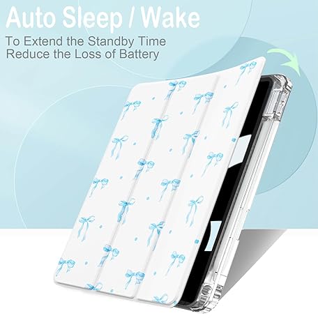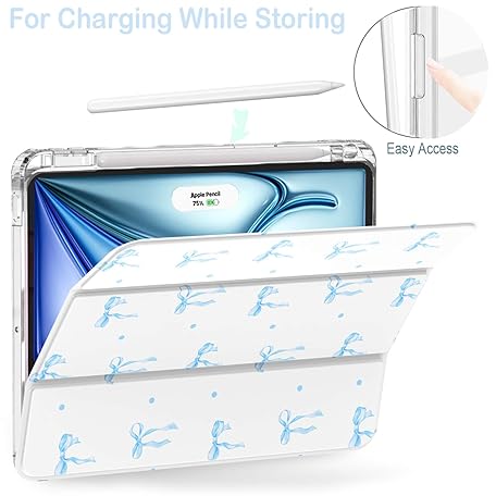 Sản phẩm Feams Slim Case for iPad Air 11-inch M3 2025 / M2 2024, iPad Air 5th Generation 2022 / iPad Air 4th Generation 2020 10.9 Inch Case Clear Back with Pencil Holder & Auto Sleep, Blue Bow đang được bán với giá ưu đãi là $27.5116 tại nước Anh.