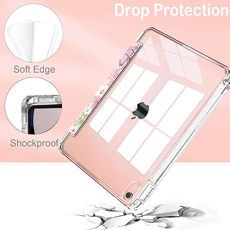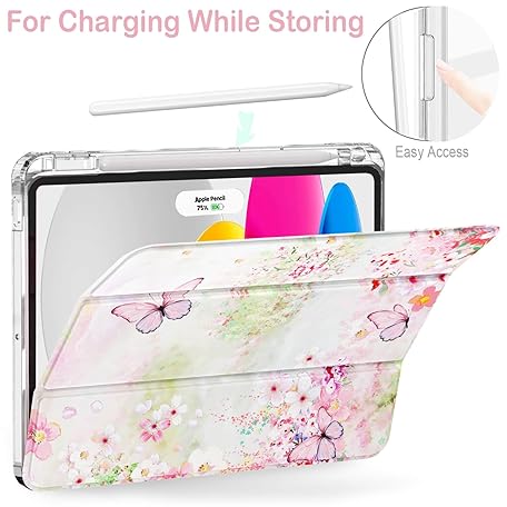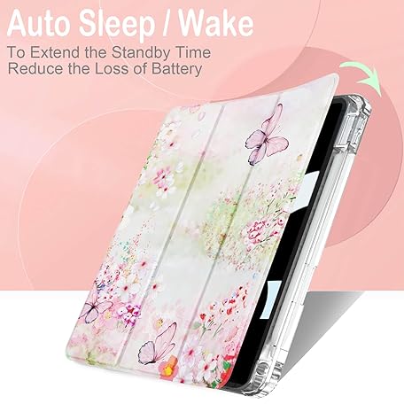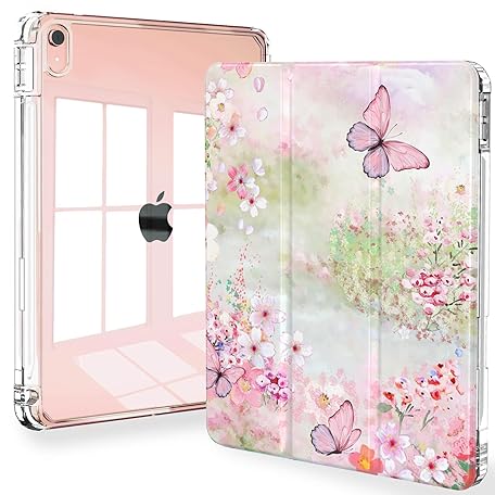 Thông tin sản phẩm Feams Slim Case for iPad Air 11-inch M3 2025 / M2 2024, iPad Air 5th Generation 2022 / iPad Air 4th Generation 2020 10.9 Inch Case Clear Back with Pencil Holder & Auto Sleep, Butterfly Garden
