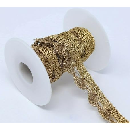 Feathers Creation 10 X Yard Zari Scallop Edging Lace Trim L Gold,Gold,Silver Embellish,Decoration