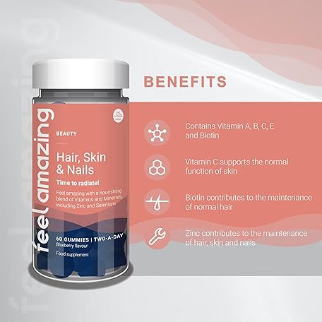 Sản phẩm Feel Amazing Hair, Skin & Nails Gummies - Zinc, Biotin & Vitamin C - Blueberry Flavoured - Vegetarian - 60 Gummies - 30 Servings - 1 Month Supply đang được bán với giá ưu đãi là $10.3332 tại nước Anh.