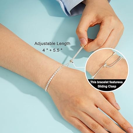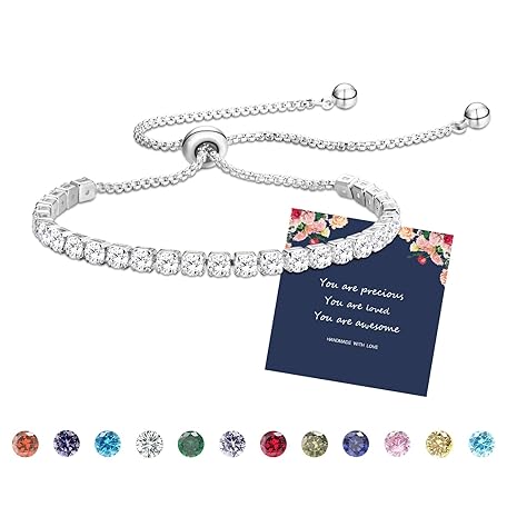 Sản phẩm Fehki Silver Bracelet for Womens Silver Tennis Birthstone Dainty Crystal Zirconia Bracelets Birthday Christmas Valentine's Day Jewellery Gift for Mum Sisters Girlfriend đang được bán với giá ưu đãi là $10.4858 tại nước Anh.