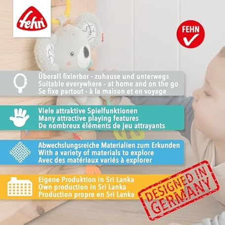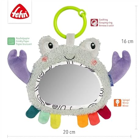 Thông tin sản phẩm Fehn Activity-Mirror Crab - Motor Toy for Hanging for Strollers, Cot and High Chair - for biting, grabbing and producing sounds - Toys for babies and children from 0+ months