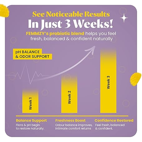 Thông tin sản phẩm Femmzy Vaginal Probiotic Gummies for Women - BV and Odour Support, pH Balance, Intimate Flora & Gut Health – Advanced Lactobacillus Strains + Prebiotic Blend + Vitamin C for Immune — Tasty Pineapple