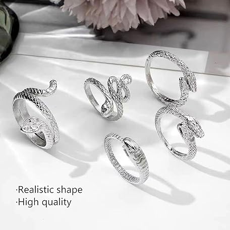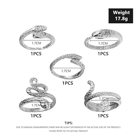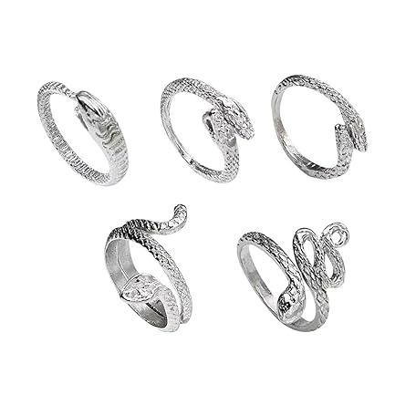 Sản phẩm FFDHWU 5-Piece Gothic Snake Ring Set, Open Adjustable Silver Snake Rings đang được bán với giá ưu đãi là $5.1339 tại nước Anh.