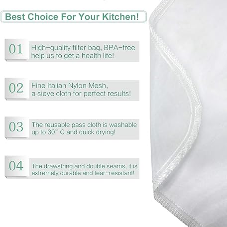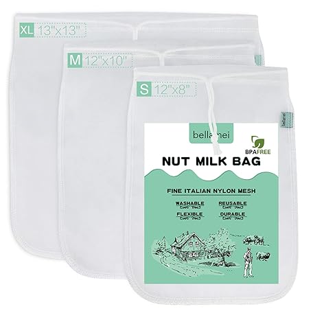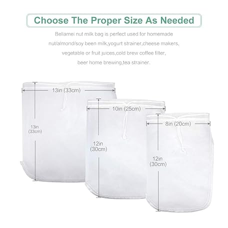 ffomo Nut Milk Bag Reusable 3 Pack 200 Micron Nut Bags for Almond/Soy Milk Greek Yogurt Professional for Cold Brew Coffee Tea Beer Juice Fine Italian Nylon Mesh,8541963569