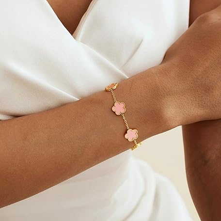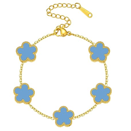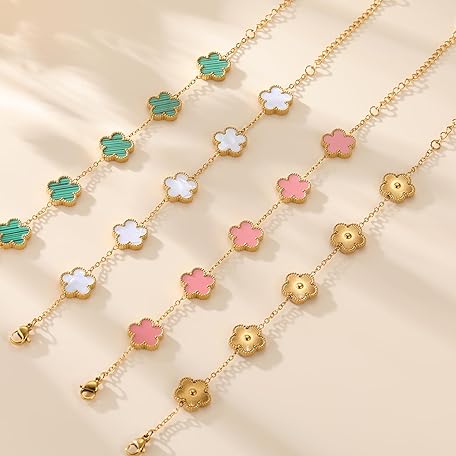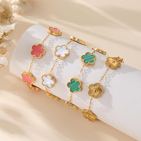 Fimhut Unique 14K Gold Four-Leaf Clover Bracelet, Suitable for Ladies,White/Black/Blue Lucky Chain Four-Leaf Clover Bracelet,Fashionable Bracelet Set,Jewelry Gift Suitable for Ladies