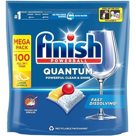Thương hiệu Finish là cái tên nổi tiếng được rất nhiều khách hàng trên thế giới chọn lựa. Với kiểu dáng đẹp mắt, sang trọng, sản phẩm Finish Dishwasher Tablet, Quantum Infinity Shine, 100 Tablets, Lemon Sparkle, Powerful Clean & Shine Detergent Tabs, Tough on Grease Stains là sự lựa chọn hoàn hảo nếu bạn đang tìm mua một món cho riêng mình.