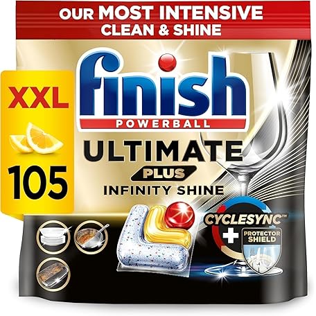 Sản phẩm Finish Dishwasher Tablet, Ultimate Plus Infinity Shine, 105 Detergent Tablets, Lemon Sparkle, Tough on Grease, For our Most Intensive Clean & Diamond Shine, Effective for Short Eco Cycle đang được bán với giá ưu đãi là $17.8215 tại nước Anh.