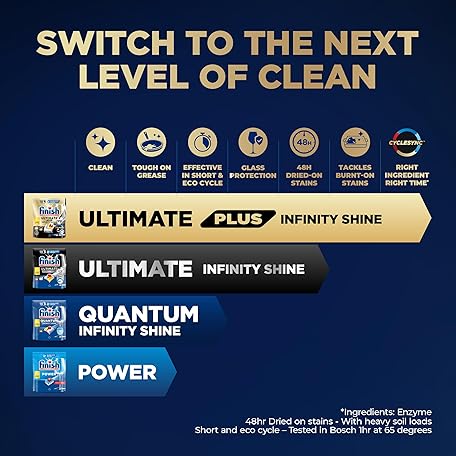 Thông tin sản phẩm Finish Dishwasher Tablet, Ultimate Plus Infinity Shine, 105 Detergent Tablets, Lemon Sparkle, Tough on Grease, For our Most Intensive Clean & Diamond Shine, Effective for Short Eco Cycle
